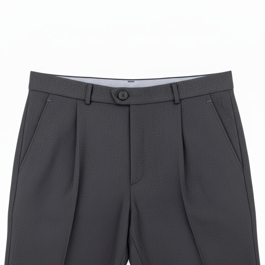Cut from supple, mid‑weight wool flannel, these trousers balance warmth and breathability with a softly brushed hand. The double forward pleats provide room through the thigh while maintaining a disciplined line; flannel structure keeps creases sharp and neat throughout the day. A higher rise and an extended tab waistband create a clean, formal front that nods to classic menswear. The leg tapers with restraint, offering a permanent, “old money” elegance that pairs effortlessly with knitwear and jackets.